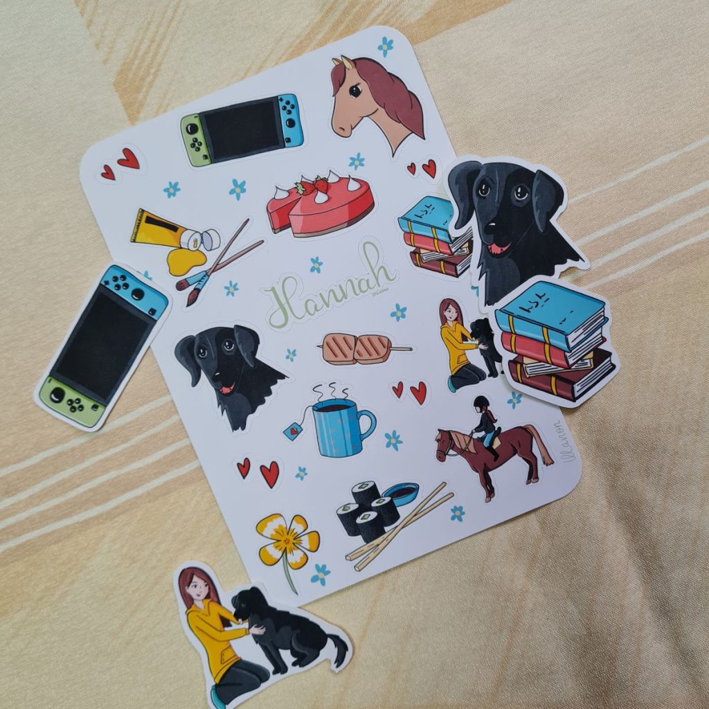 Voor mijn dochter maakte ik het eerste persoonlijke stickervel. Deze deed ik bij de traktatie voor haar verjaardag. Hoe leuk is het zo’n persoonlijke traktatie te kunnen uitdelen?